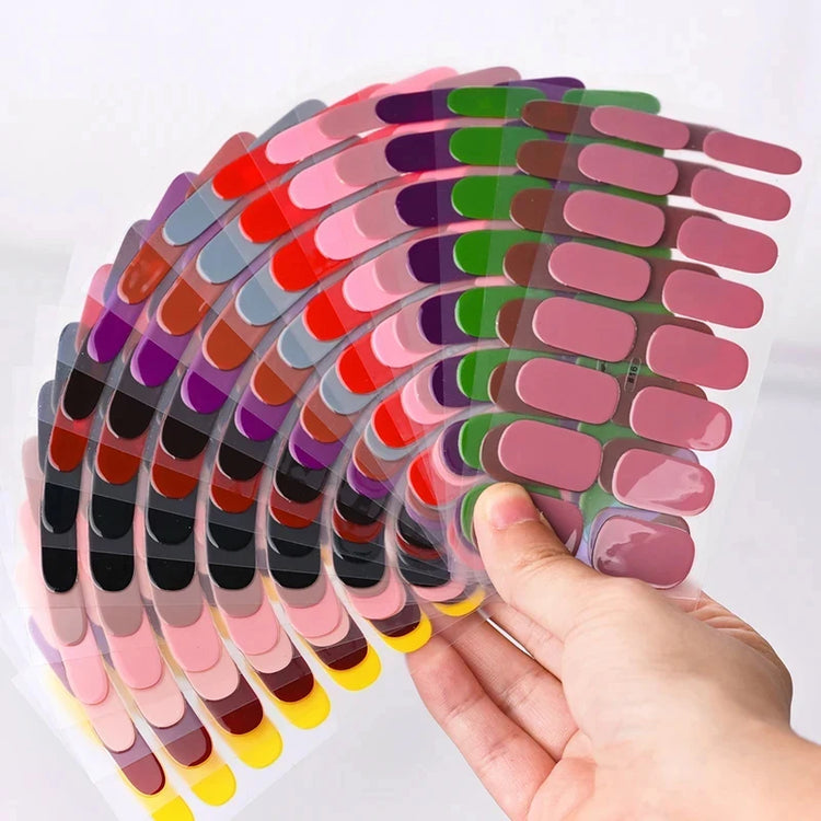 16Tips DIY Gel Nail Stickers Long-Lasting Solid Color Nail Strips Patch Slider Sticker Full Cover Decal Nail Manicure Patch