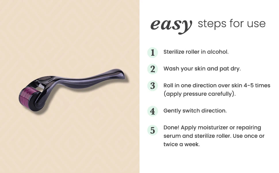 Recommended for skincare enthusiasts, professionals, and anyone looking for a safe face roller for acne scars. Clean skin, apply roller, and finish with your serum for glowing results!