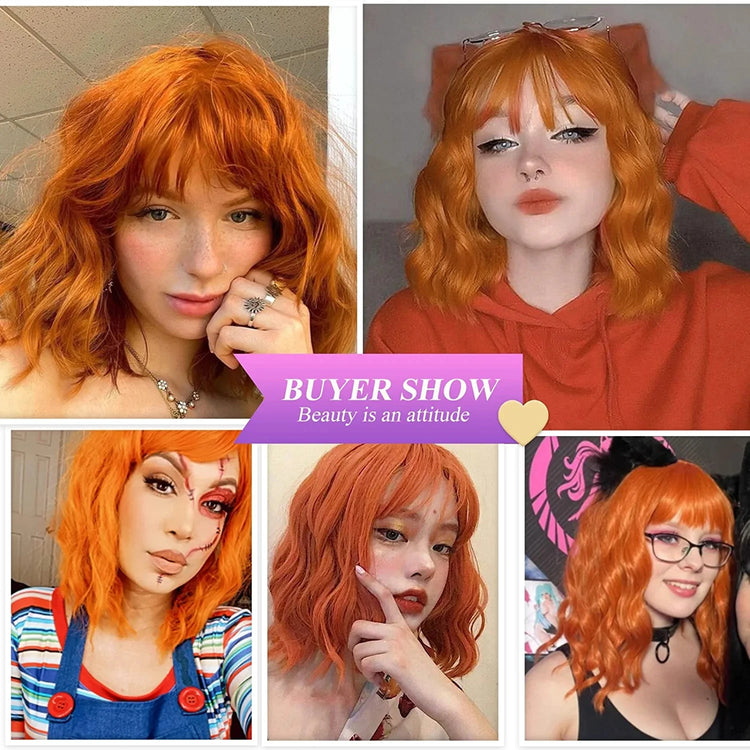 Feature 2: Short Curly Wavy Wigs with Bangs