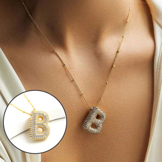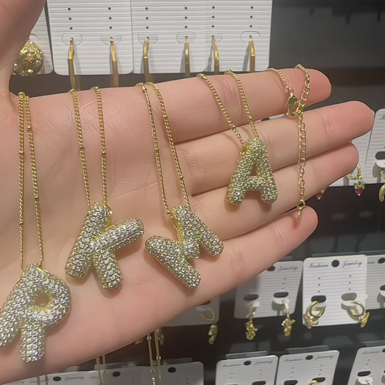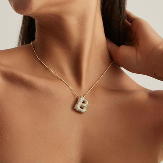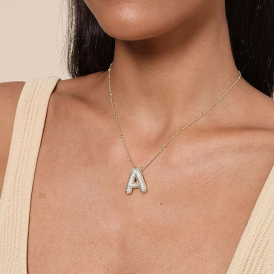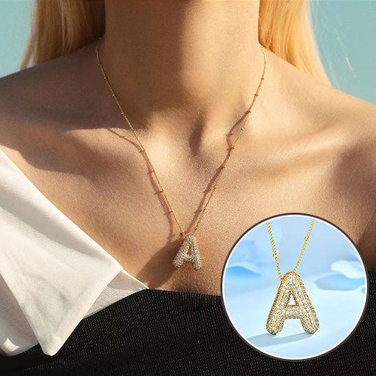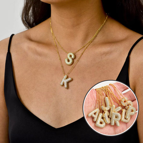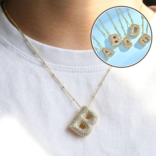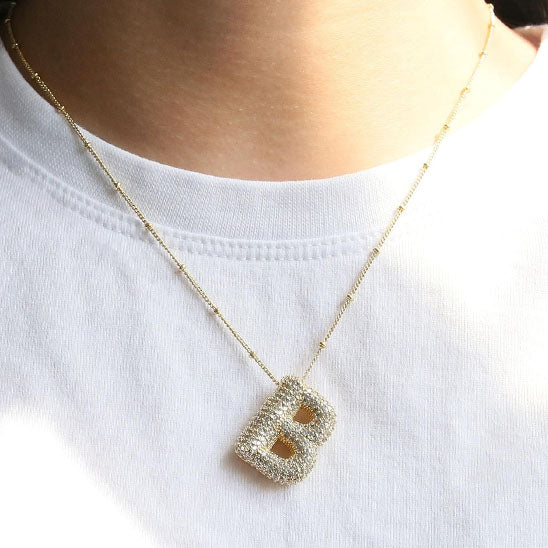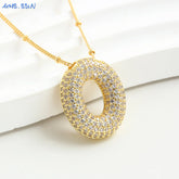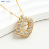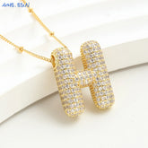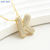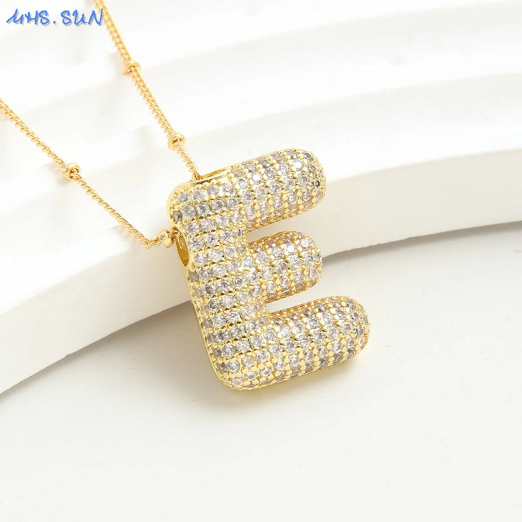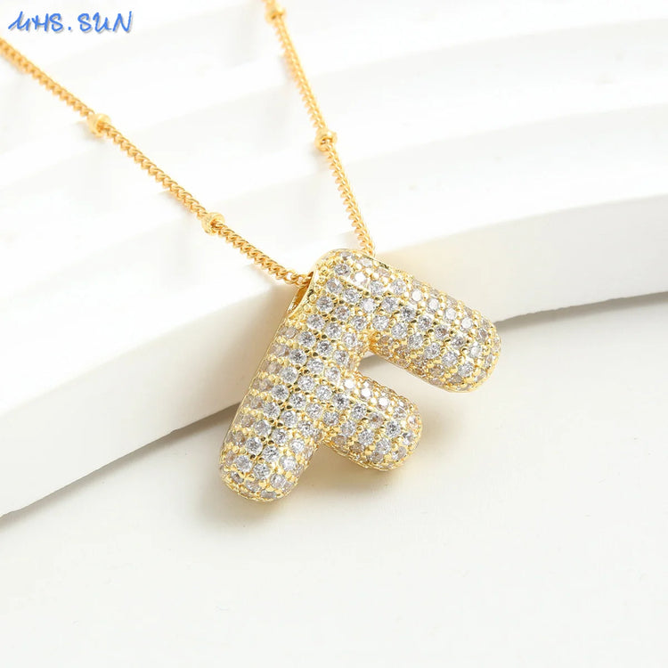 MHS.SUN Gold Plated Balloon 26 Letter Necklaces Copper Zircon Bubble Initial Pendant Chunky Women Personality Chain Jewelry