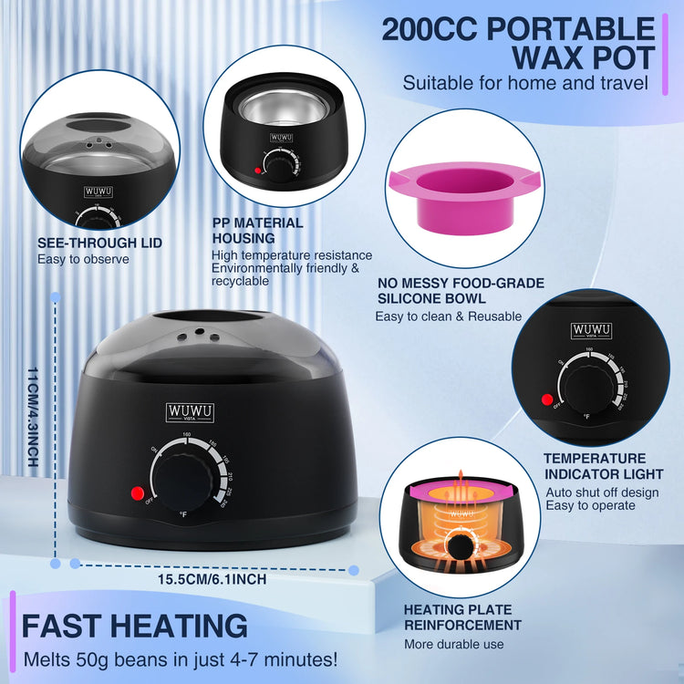 Achieve smooth, hair-free skin with WUWUVISTA's Wax Beads Kit! This 19 piece set includes: