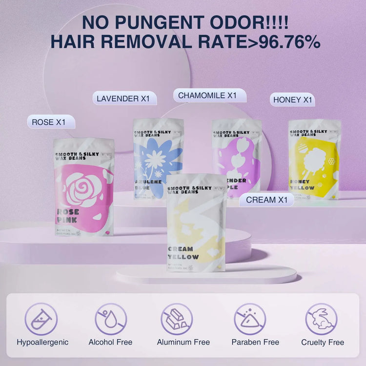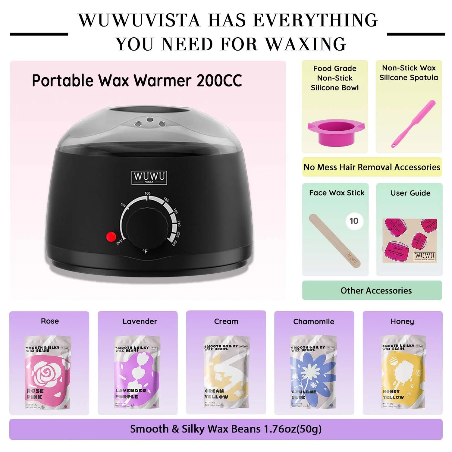 Achieve smooth, hair-free skin with WUWUVISTA's Wax Beads Kit! This 19 piece set includes: